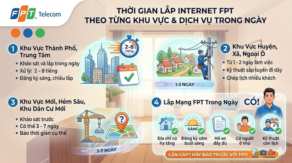 2. Thời Gian Lắp Internet FPT Theo Từng Khu Vực